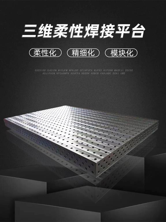 三維柔性焊接平臺分類:按孔系分為:Φ28和Φ16兩大系列.按結(jié)構(gòu)分為二維柔性組合工裝和三維柔性組合工裝.工裝平臺按材料分為鋼件平臺和鑄鐵平臺以及復(fù)合板平臺,